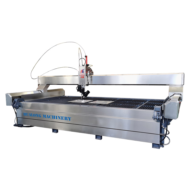 5軸水刀切割機(jī)專門用于切割大理石和花崗巖,可補(bǔ)償10°切割角度。它是一種坡口切割機(jī)。由于水刀切割是一種柔性切割方式,因此傳統(tǒng)三軸水刀切割機(jī)切割后的產(chǎn)品截面會(huì)有一定的傾斜度。為保證垂直切割斷面的精度,必須降低切割速度。而我們的5軸水刀切割機(jī)可以通過補(bǔ)償切割角度來保證垂直切割截面的精度,而不會(huì)降低切割速度。這樣就可以用來切割拼花石材,拼花地板不需要再打磨,省時(shí)省力。