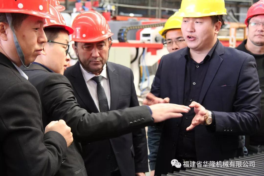 圖為烏茲別克斯坦納沃伊州市長(zhǎng)代表團(tuán)參觀華隆機(jī)械生產(chǎn)車(chē)間