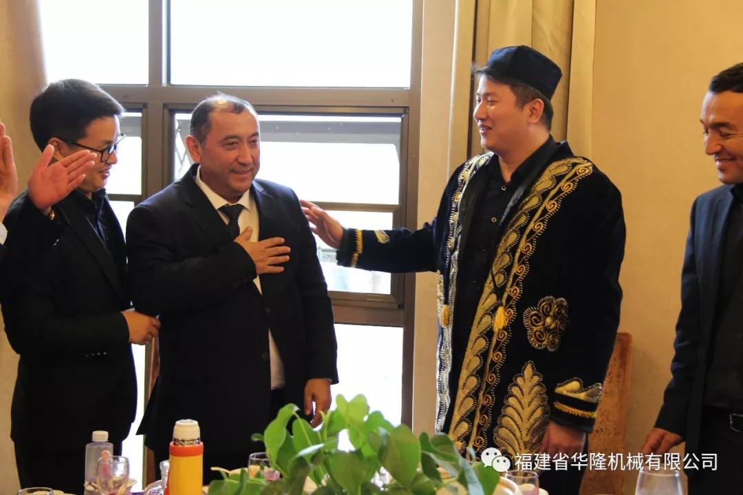 在兩方參觀完生產(chǎn)車(chē)間后,華隆機(jī)械行地主之誼,熱誠(chéng)得邀請(qǐng)烏方納沃伊州代表團(tuán)到冠豪大酒店用餐。烏方納沃伊州市長(zhǎng)也表示出了滿滿的誠(chéng)意,拿出烏茲別克斯坦傳統(tǒng)圓餅形面包與我們分享。并為華隆機(jī)械銷(xiāo)售部經(jīng)理披上象征烏茲別克斯坦最高榮譽(yù)的傳統(tǒng)服飾。
