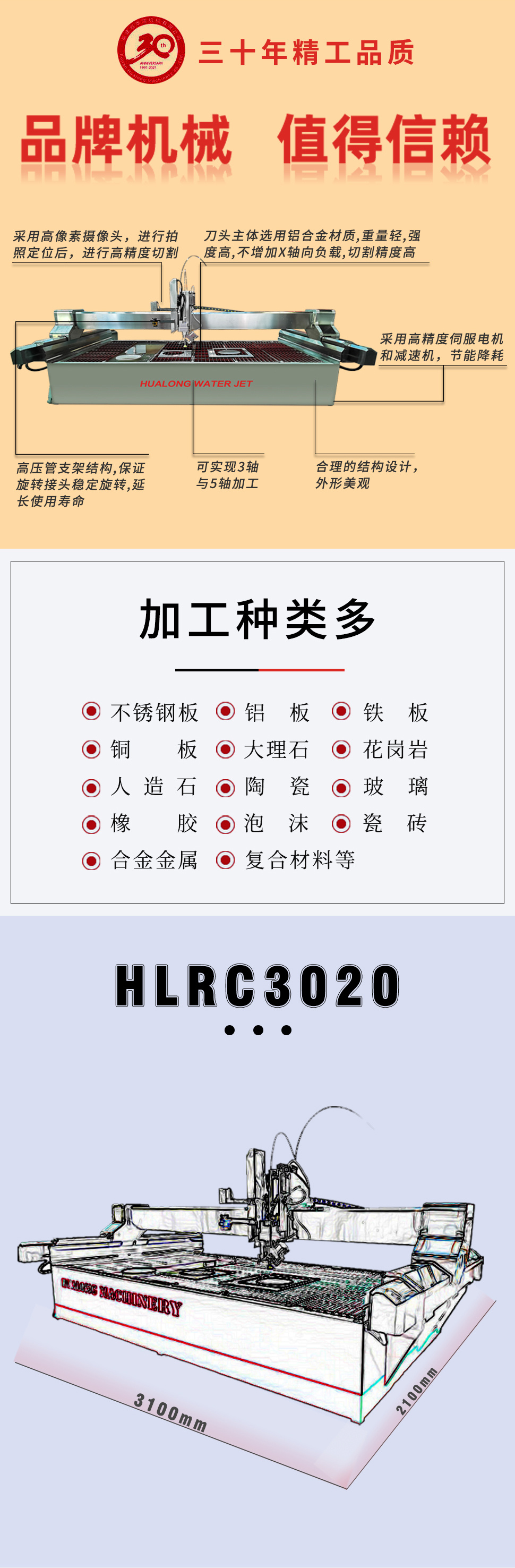 HLWJ2015/3020/4020五軸數(shù)控水刀切割機